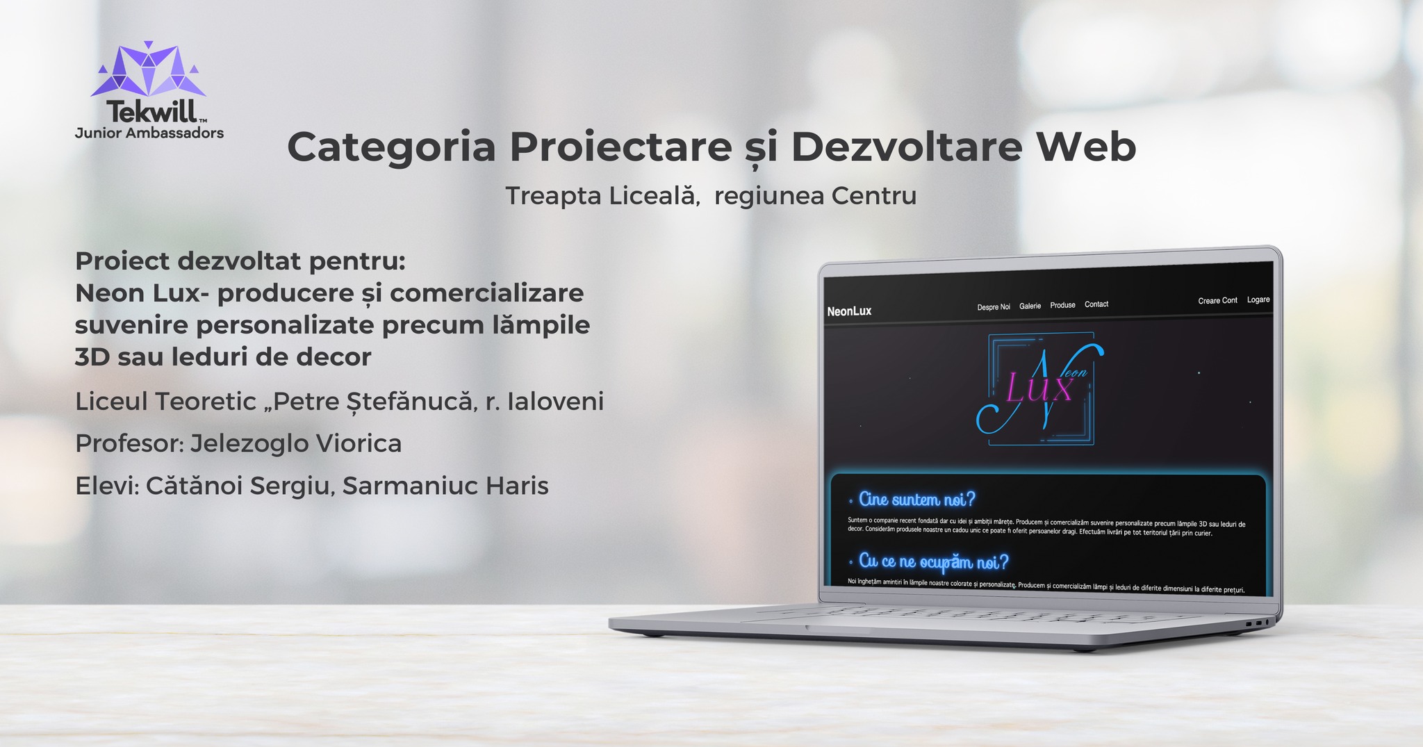 Categoria Proiectarea și dezvoltarea Web, trapta liceală – locul III, proiect dezvoltat pentru Neon Lux – producere și comercializare suvenire personalizate precum lămpile 3D sau leduri de decor de elevii Sergiu CĂTĂNOI, Haris SARMANIUC, profesor Viorica JELEZOGLO;